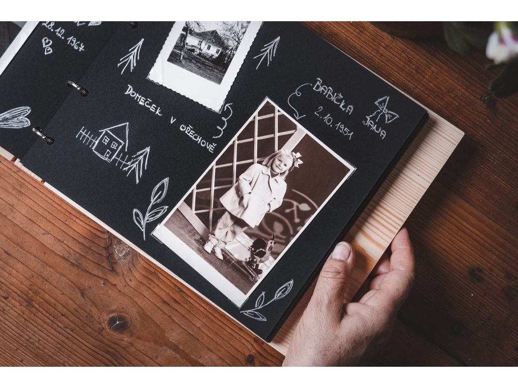 - S pauzovacím papírem: 25 černých listů proložených strukturovaným pauzovacím papírem, který lépe ochrání vaše vzpomínky před vlhkostí a poškozením.