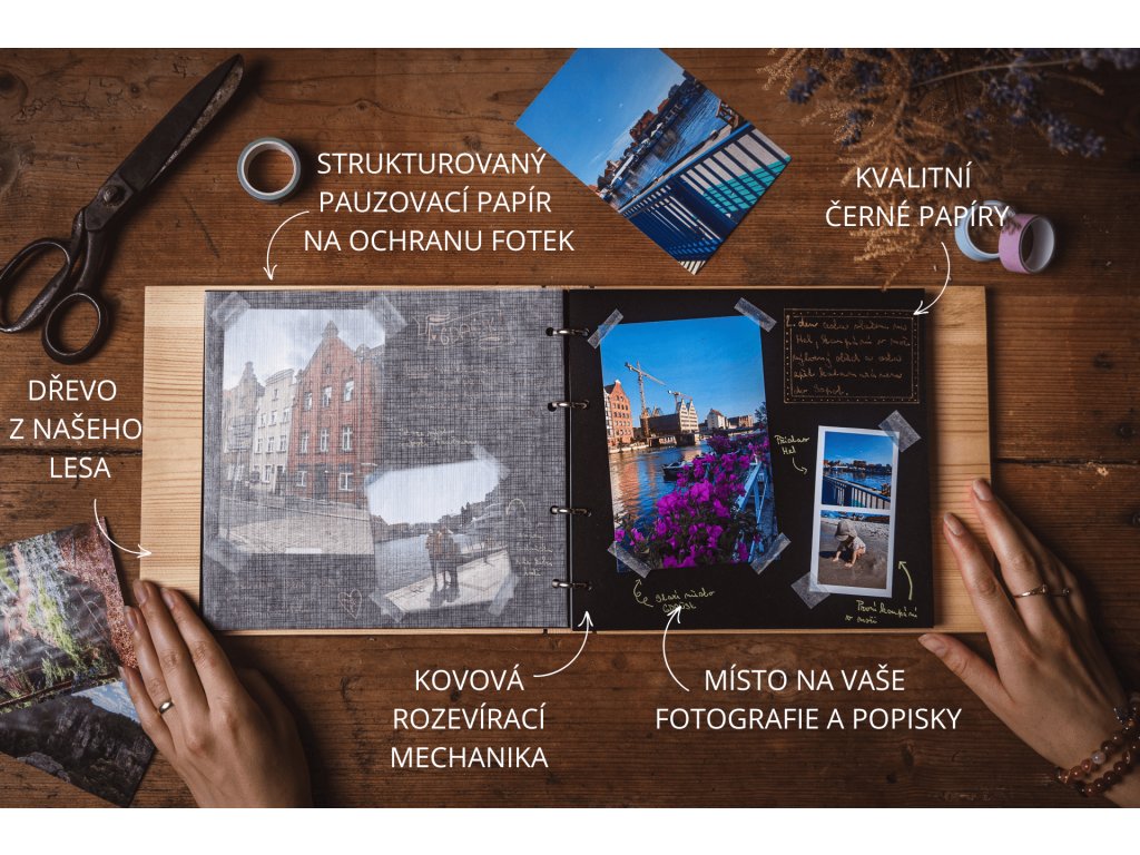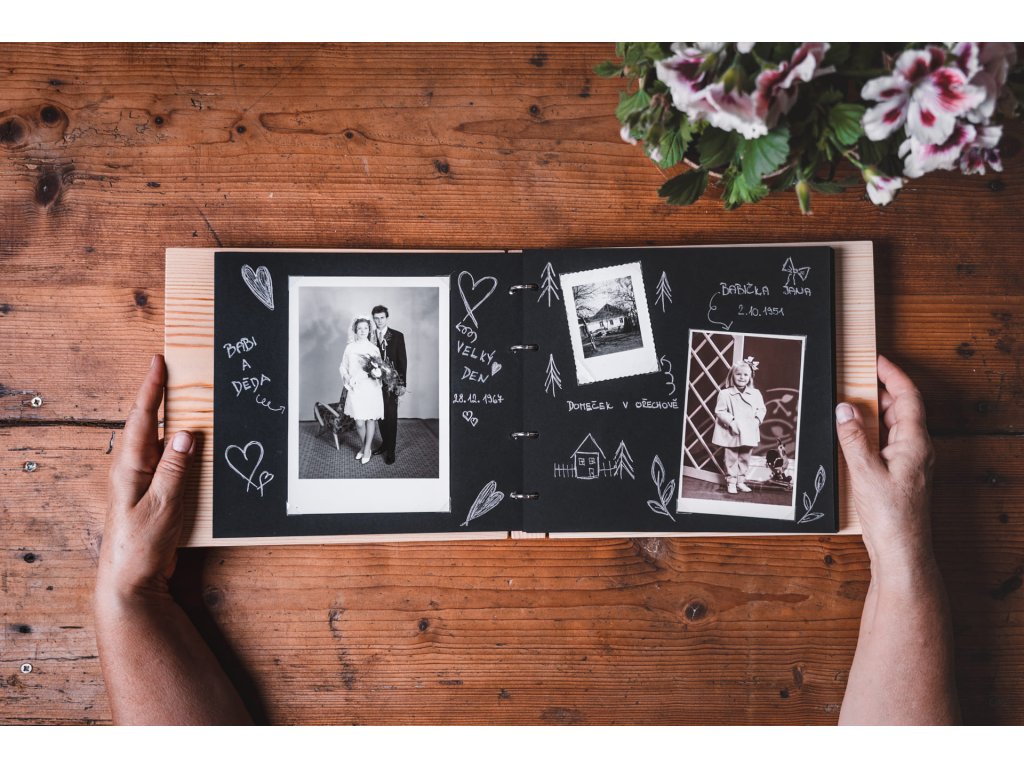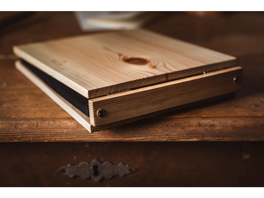 - Ačkoliv jsme výrobek vyrobili velmi pečlivě, stále se jedná o dřevo. Prosíme tedy, nevystavujte album vlhku a nadměrným teplotám a chraňte ho před nešetrným zacházením. Za odměnu vám bude sloužit mnoho let.