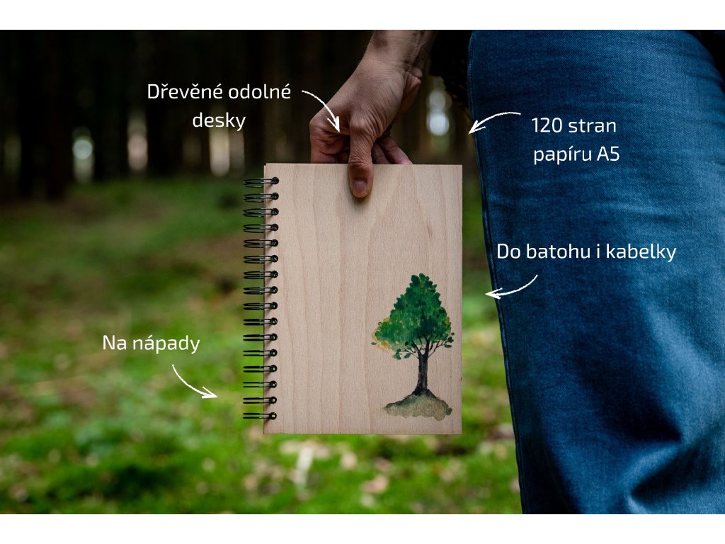 Potisk stromu na přední straně bloku, gravírované logo na zadní straně