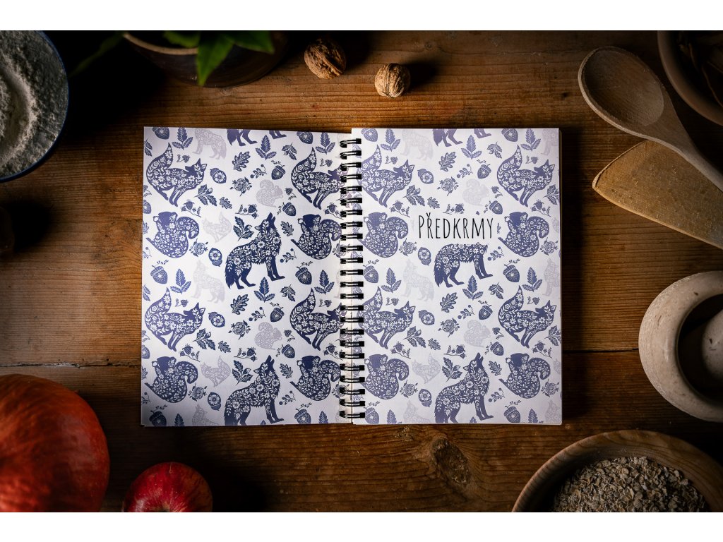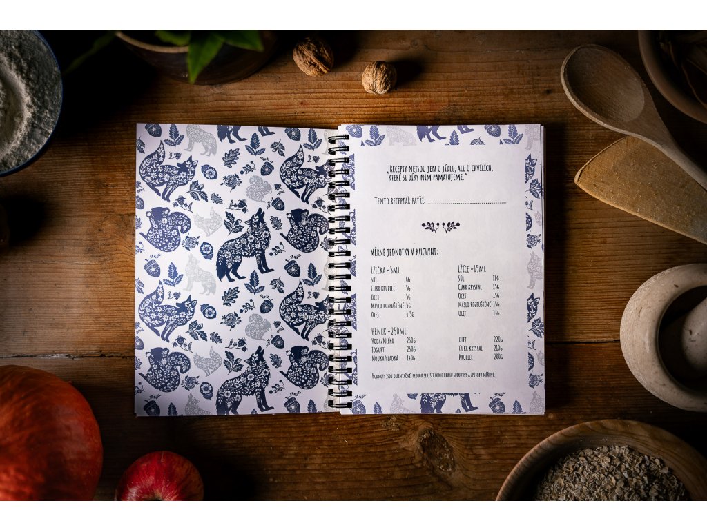 Papírový blok s motivem receptáře a autorskými ilustracemi