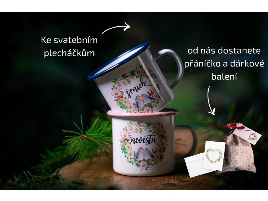 - Potisk autorské ilustrace na přední straně plecháčku, logo na zadní straně.